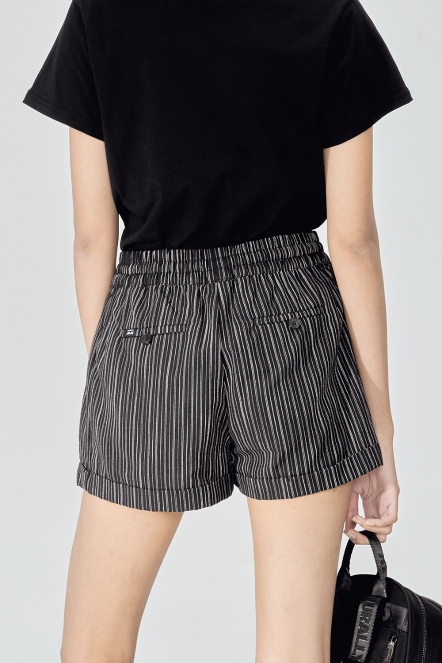 條紋棉麻鬆緊短褲