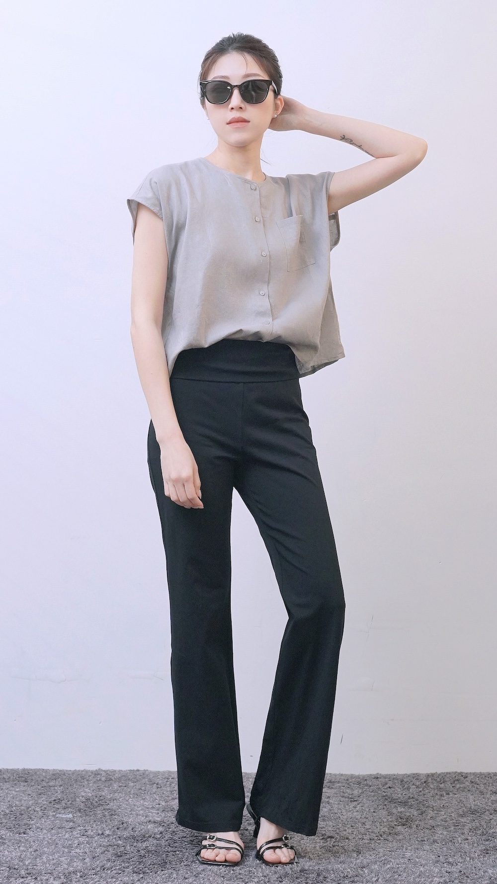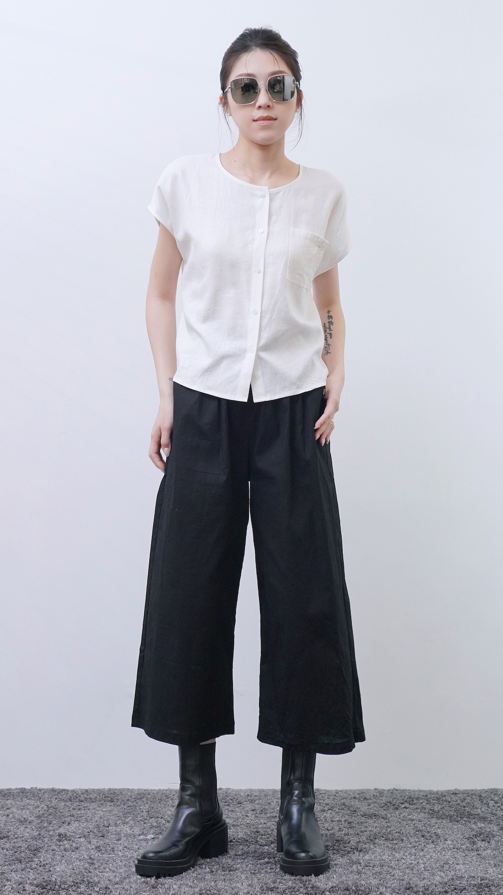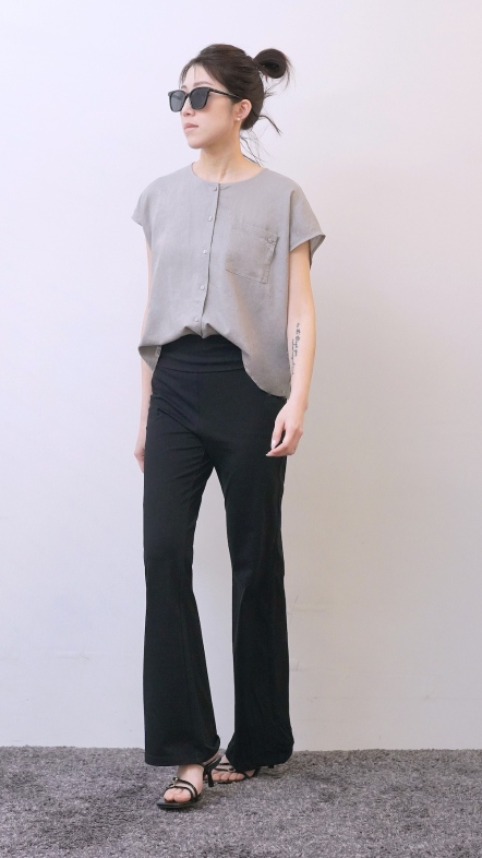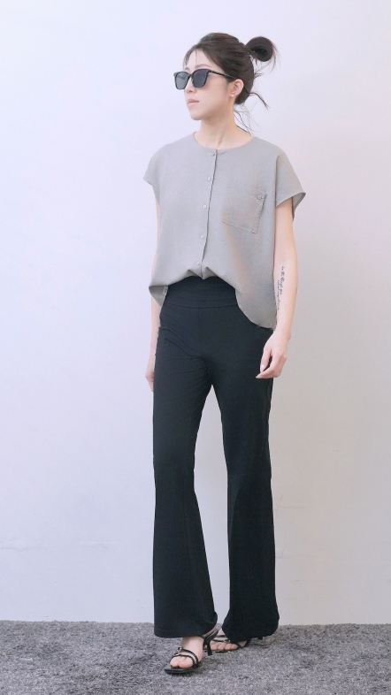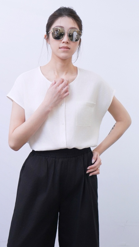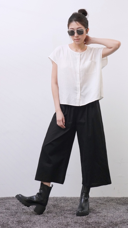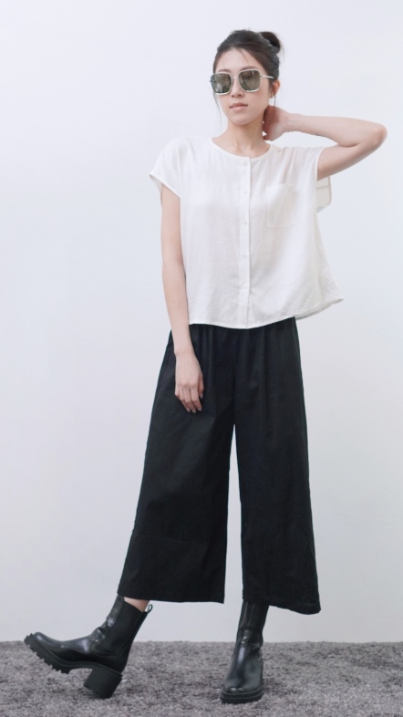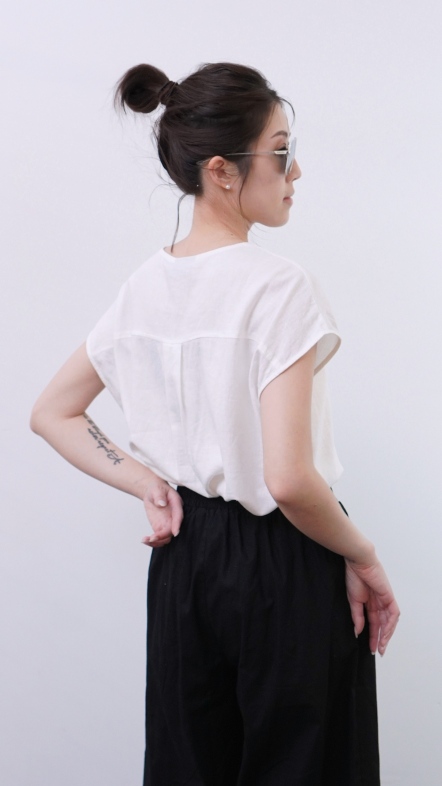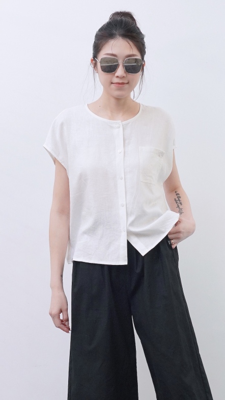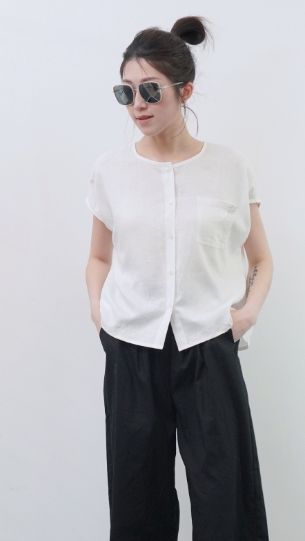 +俐落簡約剪裁:短袖圓領搭配極簡門襟設計。