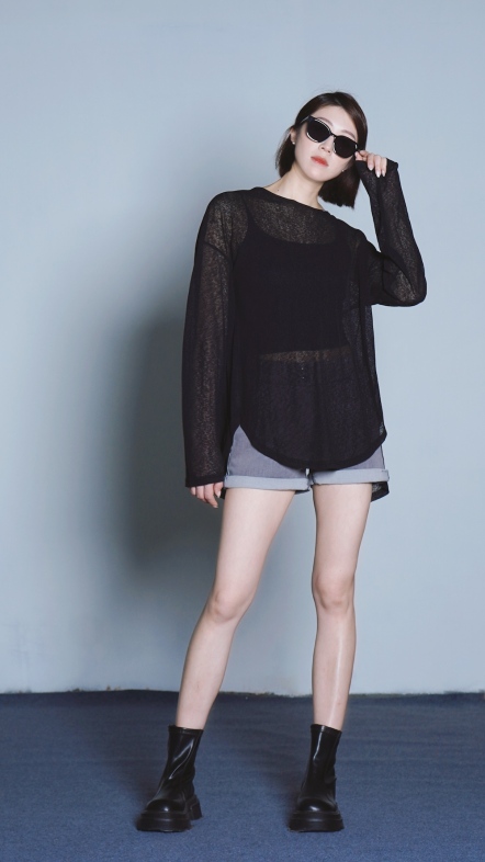 +涼感透膚材質:輕薄親膚,透氣舒適,適合夏日穿搭。