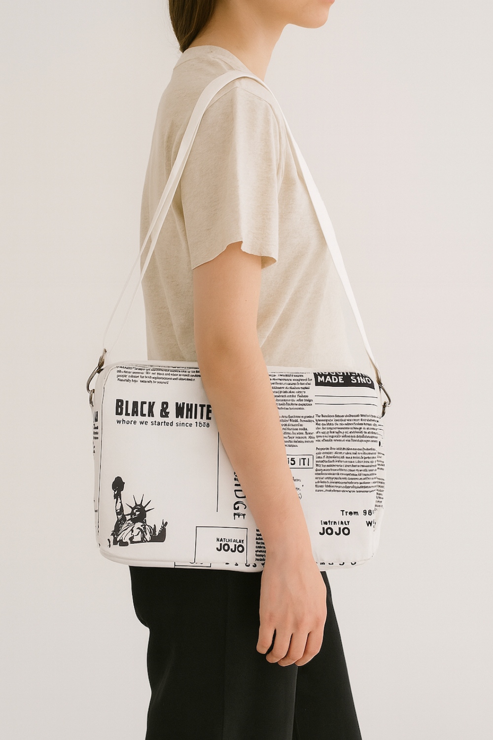 報紙系列配件圖騰,因滿版印花,每個包的花色都是獨一無二的,線上購買不得挑選、更換花色,如欲自選花色建議到門市購買挑選!